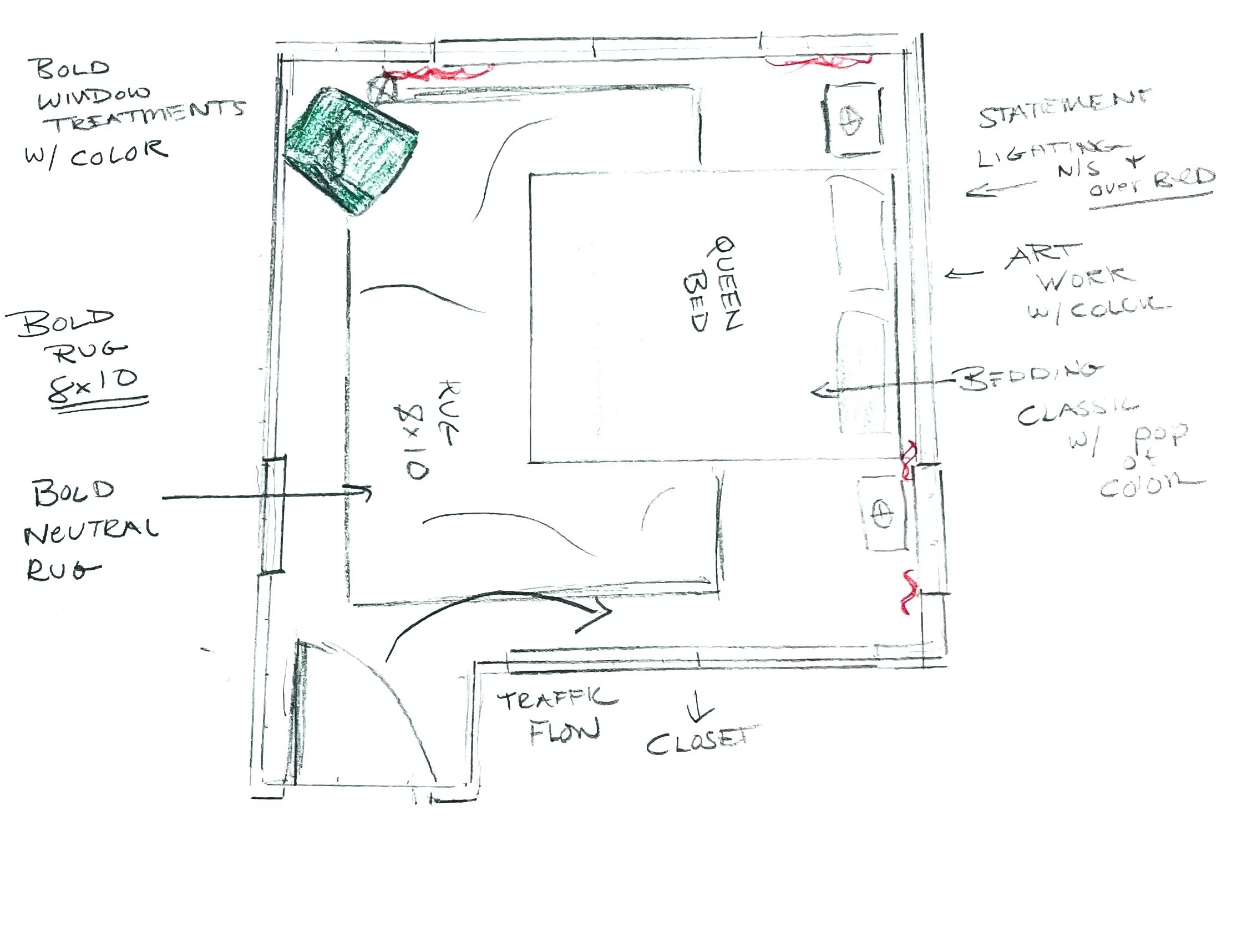 Detailed project direction; paint color, furniture, and accessory selections